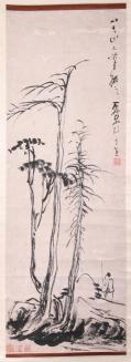 DescriptionThe painting depicts a scholar standing behind a low promontory with three large trees in the left foregound. Executed in the style of Chu Ta (Pa-Ta-Shan-Jen);Status
