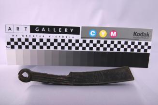 DescriptionPerforated on one end with raised parallel ridges on 2 sides of handle; raised pattern (characters?) on 2 sides of blade.Status