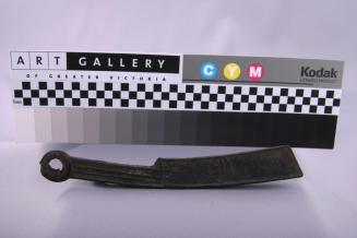DescriptionPerforated on one end with raised parallel ridges on 2 sides of handle; raised pattern (characters?) on 2 sides of blade.Status