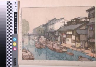 DescriptionCanal scene with sampans, houses, bridge and tree.Status