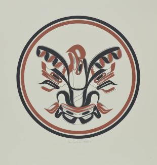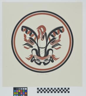 DescriptionTwo concentric circles enclose a group of motifs in brown and black.Colour: black;brown