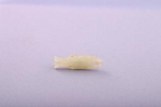 Descriptionsmall fish shaped pendant has a perforation for the eye and incised lines for gills, fins etc. There is a small curved tail.Status
