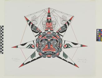 DescriptionSun Mask design is depicted in full colour in the open position. There is a line depiction in behind, showing the design on the top portion of the rays when the mask is closed. Colours are red, black, green and whiteColour: red; black; green; white