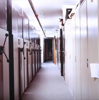 DescriptionImages from the Art Gallery of Greater Victoria: compacting storage units in collectionStatus