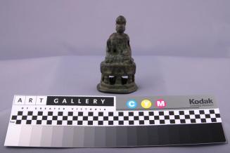 Descriptionfemale figure on hexagonal base; raised on shaped supports, in dhyanasana & with one hand in vitarka mudra, the other holding an object in her lapStatus