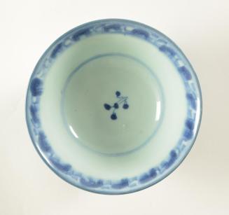 DescriptionBlue and white decorative botanical designs overall on exterior and on upper inside and bottom inside. Circular shaped bowl has a small foot and slightly flaring sides.Colour: blue;white