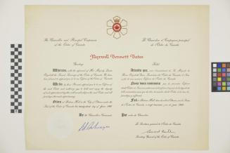 DescriptionCertificate for the Order of Canada made out to Maxwell Bennett Bates and dated June 1980Status