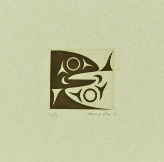DescriptionFish or whale motif in brown ink on buff coloured paper.Colour: brown; buff