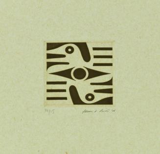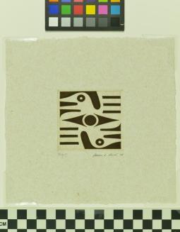 DescriptionFirst Nations motif in brown on buff coloured paperColour: brown; buff