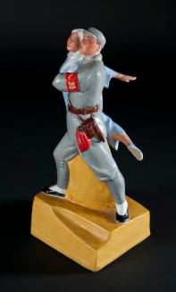 DescriptionFigurine depicts two Chinese figures, a man and a woman dressed in Revolutionary garb, in a dance pose. The figures are glazed and rest on a square base.Status