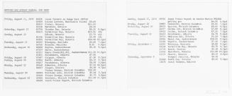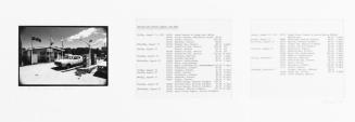 DescriptionExhibition component consisting of a black and white photograph and two windows of typed travel data in the form of dates, places and gas prices.Colour: black; white