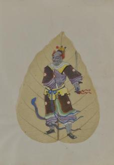 DescriptionChinese export painting; image depicts a standing demon-like male figure with a snake;Status