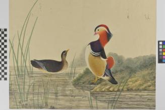 DescriptionChinese export painting; landscape with water and a male and a female mandarin ducks;Status