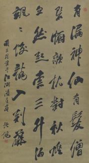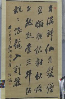 Descriptionfour vertical rows of calligraphy with a smaller row at leftStatus