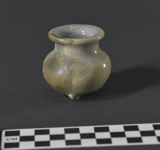 Descriptionrounded body with short flared neck and three feet;Status