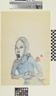Descriptiondrawing of a blue hooded figure with mouth openStatus