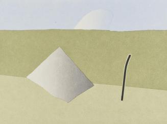 DescriptionLandscape with vertical black line right sideColour: black; pale blue; grey; olive green; pale olive green