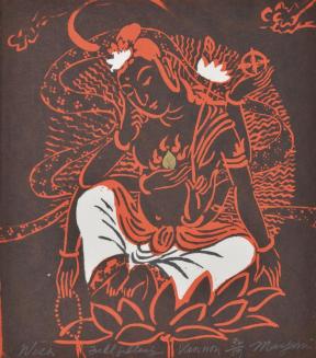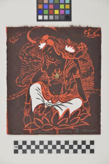 DescriptionImage is of a seated female figure with six arms, with a white garment covering her lower half;Status