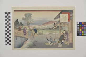 DescriptionThis series depicts scenes from the popular novel " Tokaido- chu Hiza Kurige" by Jippensha Ikku (1765-1831). The miss-adventures by the funny travelers, Mr. Yaji and Mr. Kita who caused havoc at the inns and the visiting places along the Tokaido.Status