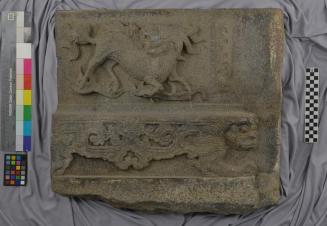 Carved stone with relief of a Qilin creature.
