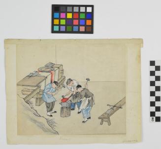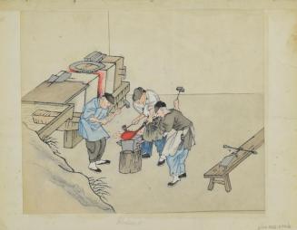 DescriptionSide A depicts three men, two on horseback. Side B depicts three blacksmiths working.Status