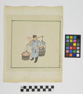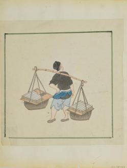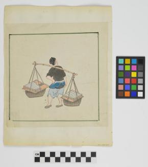 Untitled (Man carrying two baskets of tofu? on a shoulder pole) (Side B)
