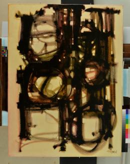 DescriptionBlack, yellow, and red abstract.Status