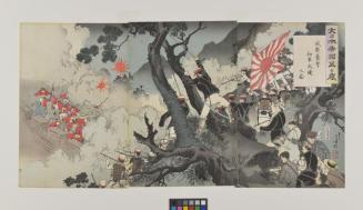 DescriptionEight embedded war correspondents observe the assault on Songwan on July 29, 1894. The foremost reporter with the white cap is Kubota Beisen (1852-1906). He wrote a series of reports on the Sino Japanese War.Status