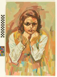 DescriptionLoosely rendered portrait of a young girl with chin resting on her hands