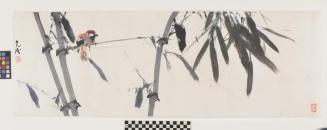 DescriptionA sparrow perched on a branch among bamboo shoots.Status