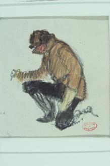 DescriptionImage of a crouching figure warming his hands; small crouching figure image au versoStatus