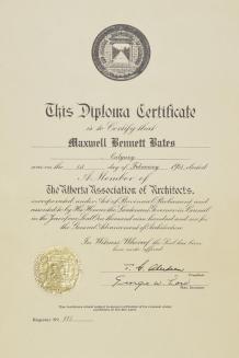 DescriptionDiploma, Alberta Association of Architects,awarded to Maxwell Bates, Feb.1, 1951Status
