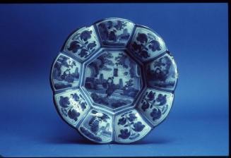 DescriptionPlate has scalloped edge, there is a different design in each scalloped section, center shows a figure in a garden while side decoration alternate between flowers & figures.Status