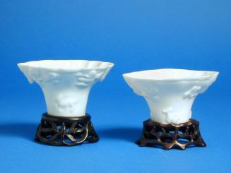 DescriptionRhino horn shape with foliated rim; transparent glazeStatus